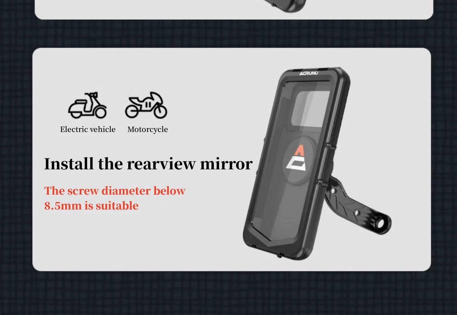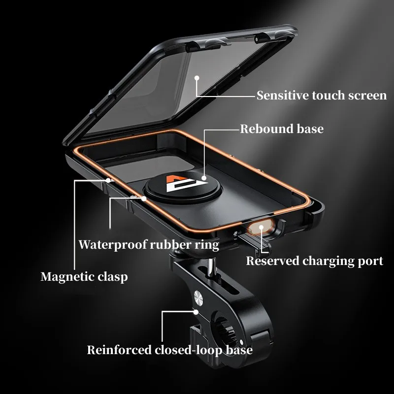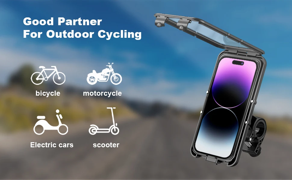 The Motorcycle Phone Mount Is Built-In With Waterproof Silicone, A Fully Enclosed Design That Can Perfectly Protect Your Phone On Rainy Days While Riding. The Motorcycle Phone Holder Has A V-Shaped Design Made Rainwater Flow Down The Screen Quickly Without Blocking The Line Of Sight.Handle Rainy Weather Easily,You Will No Longer Have To Scramble On Rainy Days.